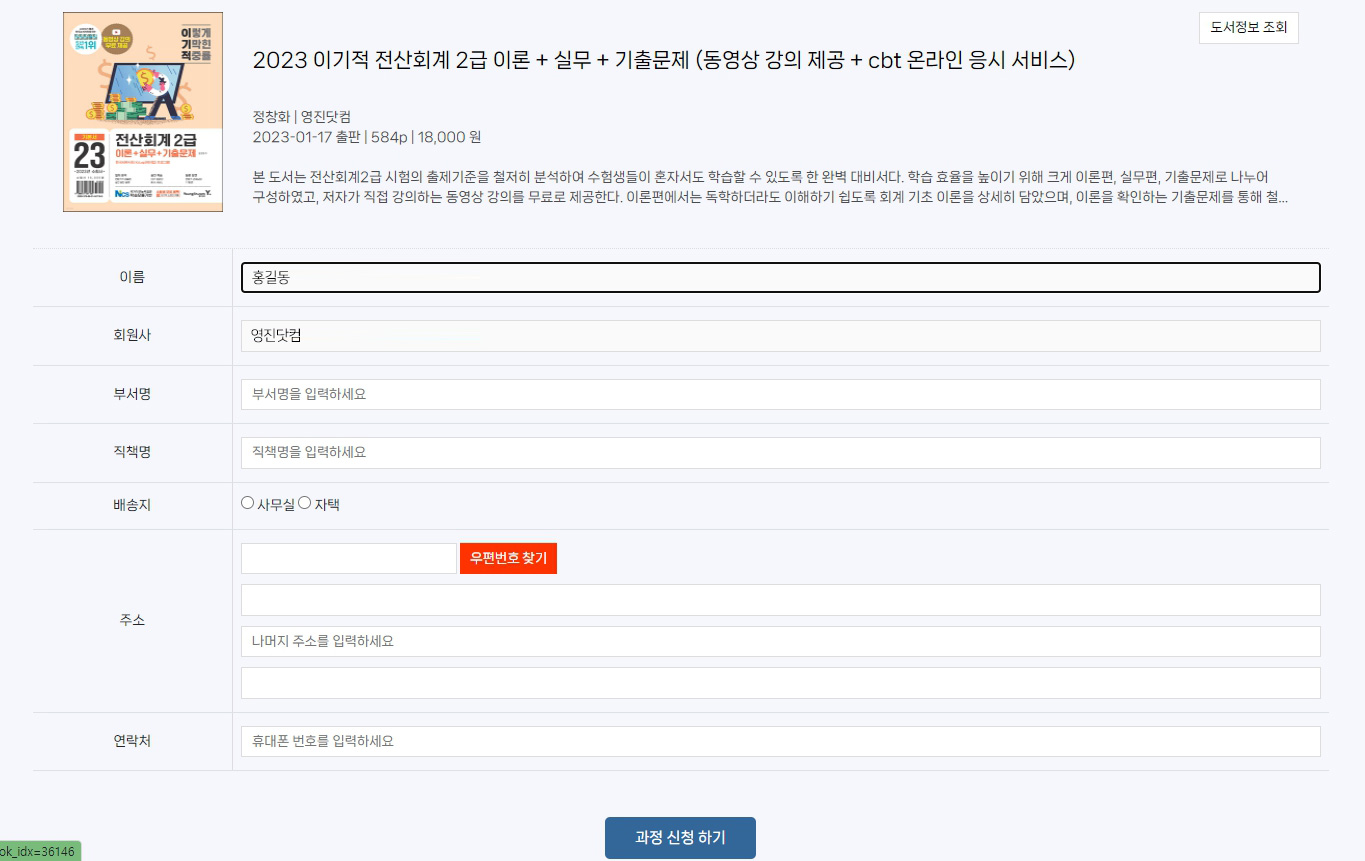 일련의 양식을 작성하신 과정 신청 하기 버튼을 클릭하세요 (배송지가 맞는지 꼭 확인하셔야 합니다.)