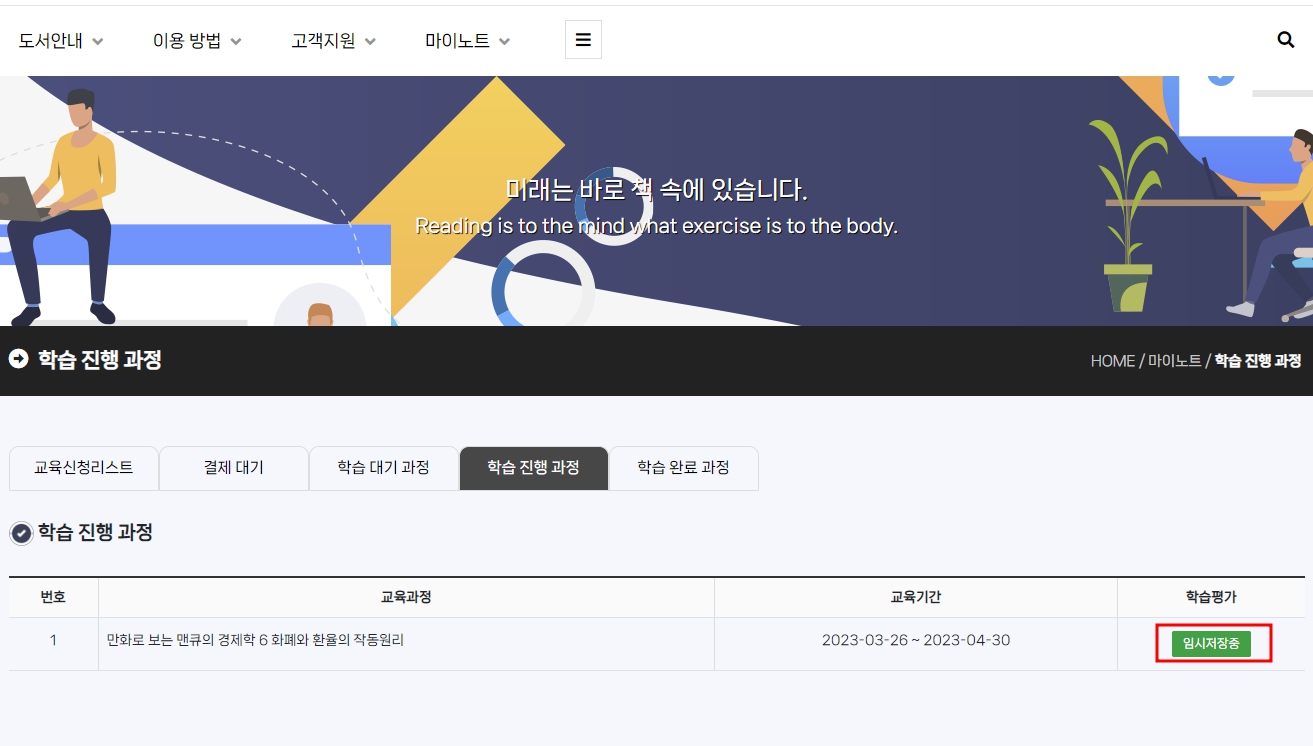 임시저장된 글은 회원인증 > 마이노트 > 학습 진행 과정에서 임시저장중버튼을 클릭 하시면 이어서 작성하실 수 있습니다.