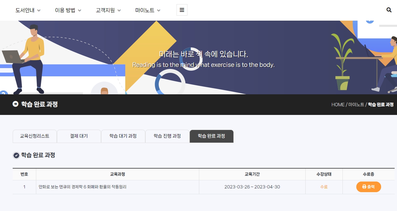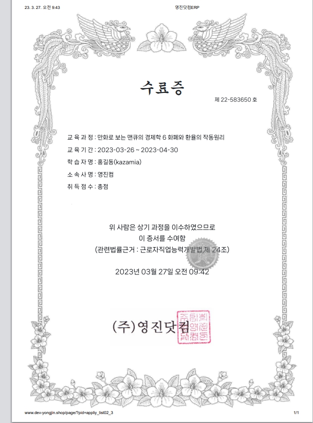 필요에 따라 수료증을 출력 하시면 됩니다.